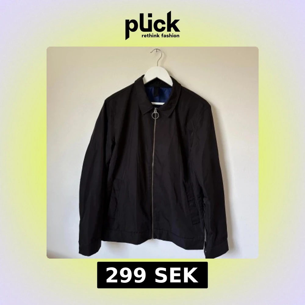 Stilren svart vindjacka från Selected Homme i storlek L. Jackan har klassisk krage, raka linjer och dragkedja med rund metallring. Tillverkad i lätt polyester, perfekt för dig som gillar minimalistisk look. Två snedställda fickor framtill och diskret blått innerfoder. 2L11