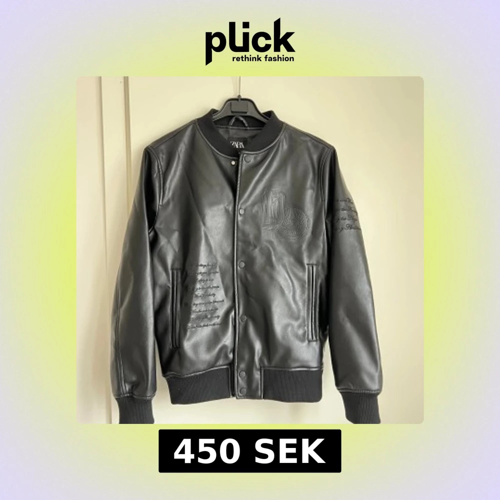 Fakeläder jacka från Zara med tryck. Använd fåtal gånger. Fint skick