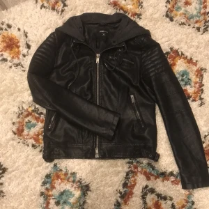 Jättesnygg skinnjacka från fb sisters med mörkgråhuva som är avtagbar.