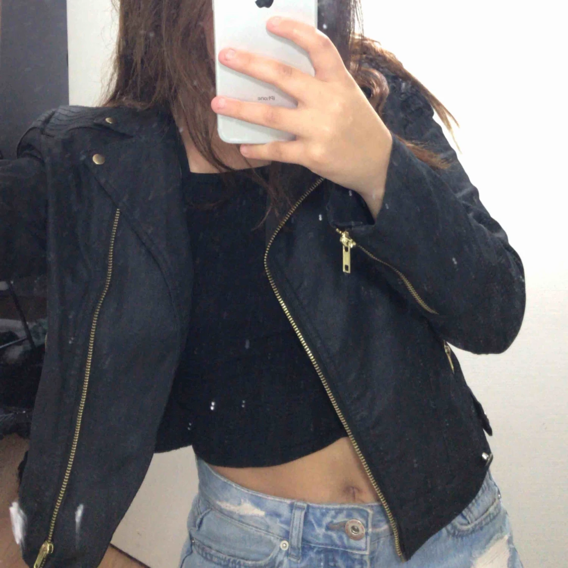En super snygg liknande skinn jacka fast inte gjort av skinn. Guldetaljer i jackan & super snygg