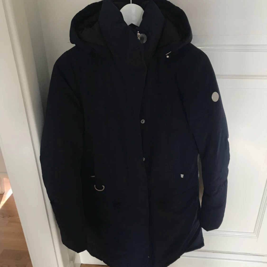 Nyskick använd en halvt vinter. Mörkblå väldigt varm på kalla vinterdagar. Dun i vilket håller värmen bra. Från märket Snoot köptes på Best of brand i Göteborg.