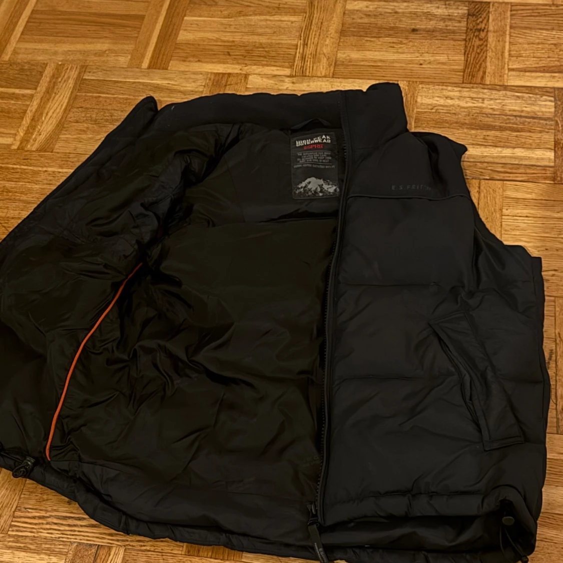 Säljer en svart dunväst från ESPRIT i mycket bra skick. Västen har en dragkedja framtill och är perfekt för höst och vinter. Den är tjock och är riktigt varm och skön ut. Perfekt för lager-på-lager-stil när det är kyligt ute. Det finns även en luva som går att ta fram där bak. Endast: 299