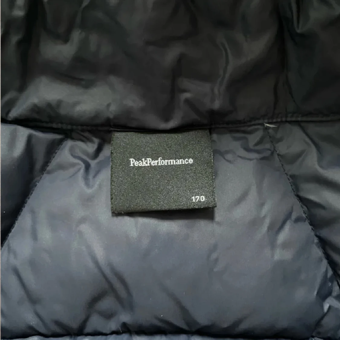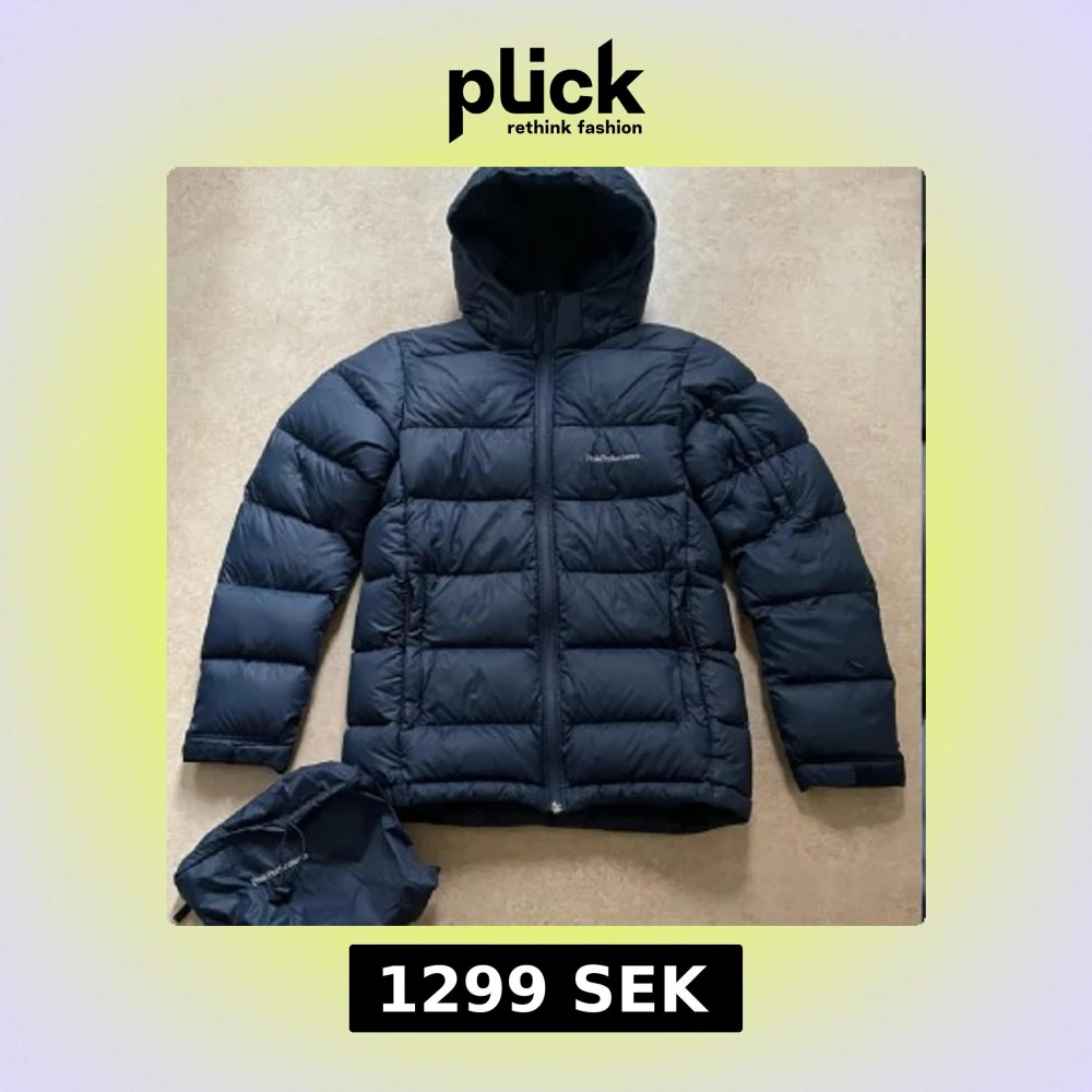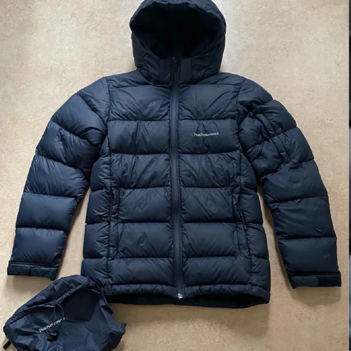 Säljer en dunjacka från Peak Performance perfekt för kyliga dagar. Den är tillverkad i ett slitstarkt material och har en bekväm passform. Den har två små hål