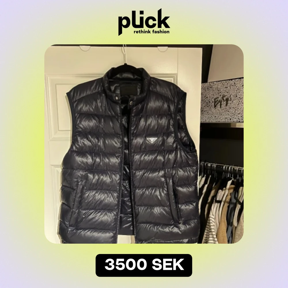 Säljer nu min Prada väst då den inte kommer till användning längre. En mindre skada på utsidan av fickan och ett litet hål innanför högerfickan men inget som syns! Storlek: 54, sitter som en M/L Färg: mörkblå Skick: 7/10 Nypris: 14000kr