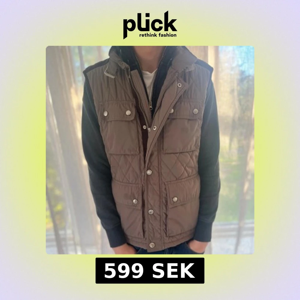 Beige väst ifrån zara med mocka detaljer på ryggen. Storleken är M📏 Modellen är 177cm och väger 65KG. Västen är unik och säljs inte längre🌟Skriv för mer info🌟