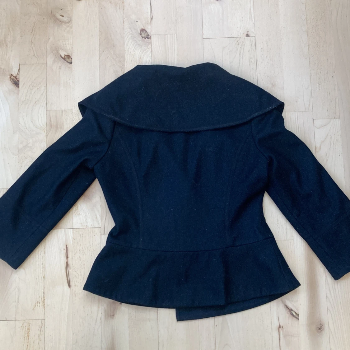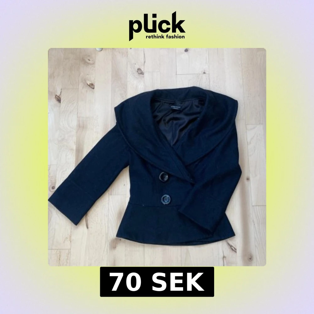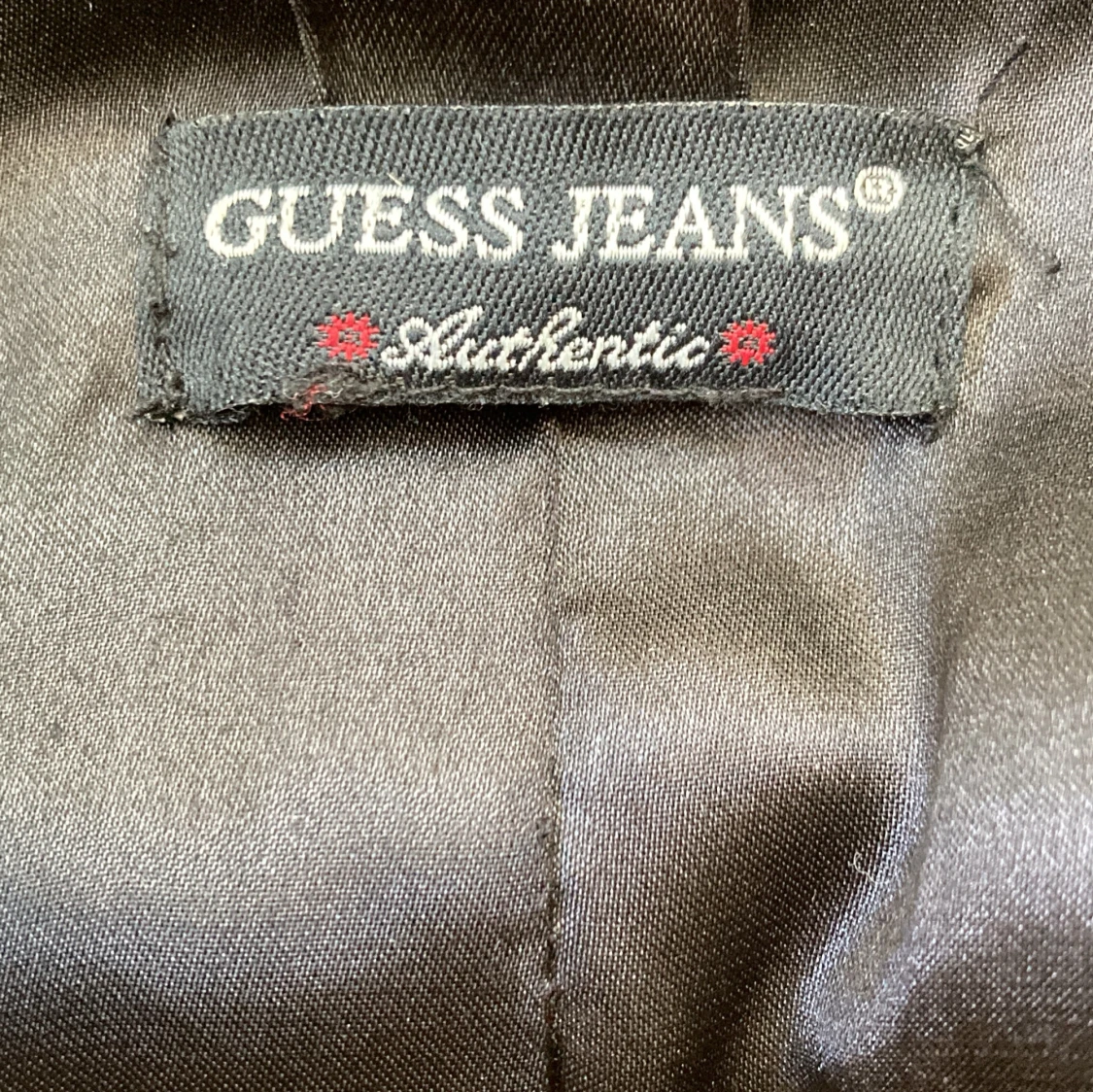 Snygg svart kavaj från Guess Jeans med bred krage och två stora knappar framtill. Väldigt figurpassande men inte för tajt🪽