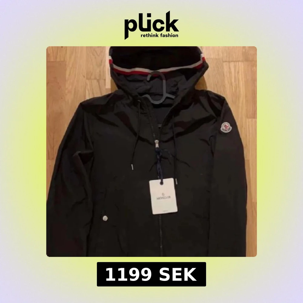 Snygg svart jacka från Moncler med huva och dragkedja. Jackan har Monclers logotyp på ärmen och en stilren design. Perfekt för en sportig och trendig look. OBS kan ej garantera att den är äkta men tror det!!!