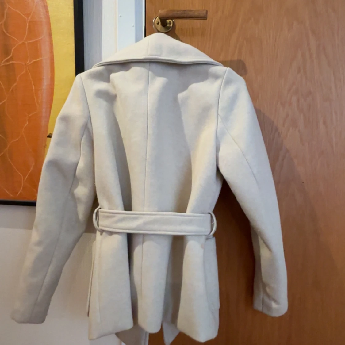 En beige snygg höst kappa från Vero moda. Köpte den förra året men den är inte andvänd alls. Eftersom jag hittade en annan kappa. Darför säljer jag denna nu , perfekt för hösten o den håller dig varm. Köpte den för ungefär 700-800kr