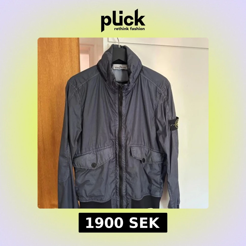 Snygg grå vindjacka från Stone Island med klassisk badge på ärmen. Jackan har hög krage, två stora fickor med knappar framtill och dragkedja. Materialet är lätt och känns skönt mot kroppen, perfekt för dig som gillar streetwear och stilren design.