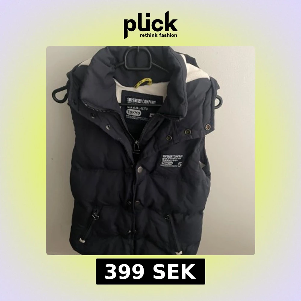 Säljer en svart väst från Superdry med luva i sporlek S, modellen är ca 180cm lång. Hör av dig vid funderingar!