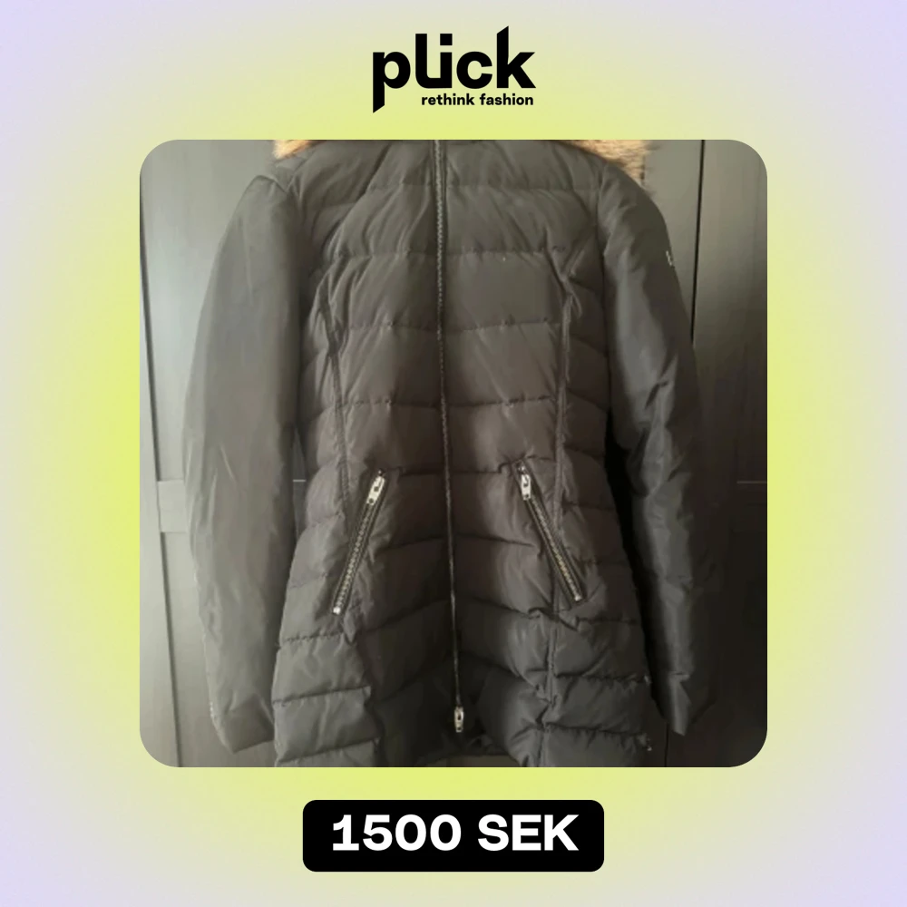 Storlek 36, svart dunjacka i gott skick, från Rockandblue Sweden. Den här delen har en avtagbar huva med dragkedja och päls.