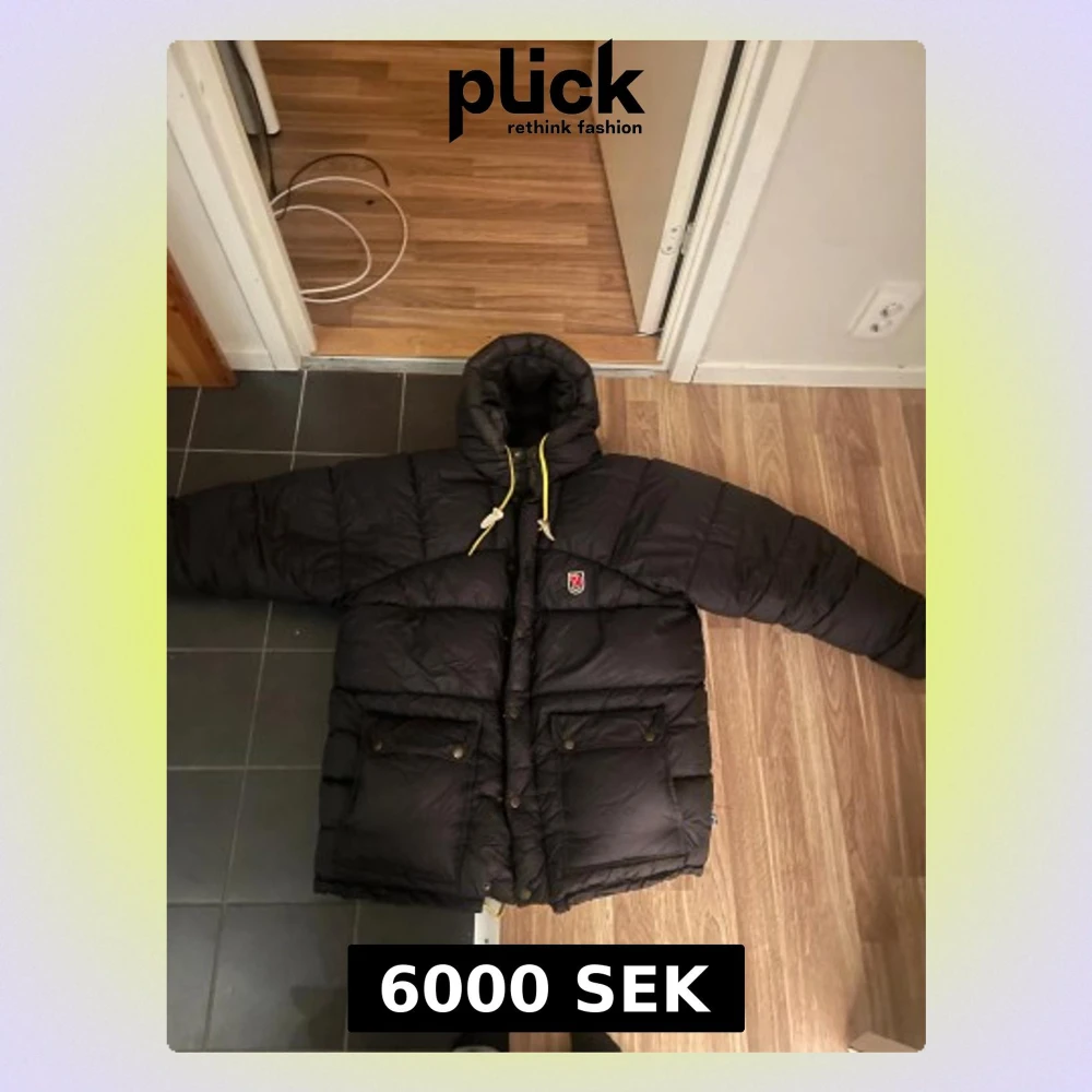 Säljer en svart dunjacka från Fjällräven med huva, gula snören och klassisk röd logga på bröstet. Jackan har stora fickor med knappar och dragkedja framtill. Perfekt för kalla dagar och riktigt snygg streetstil. Jackan har några små skador som ni kan se på bilden!går lätt att fixa till🫶🏻 kom gärna med egna priser också!