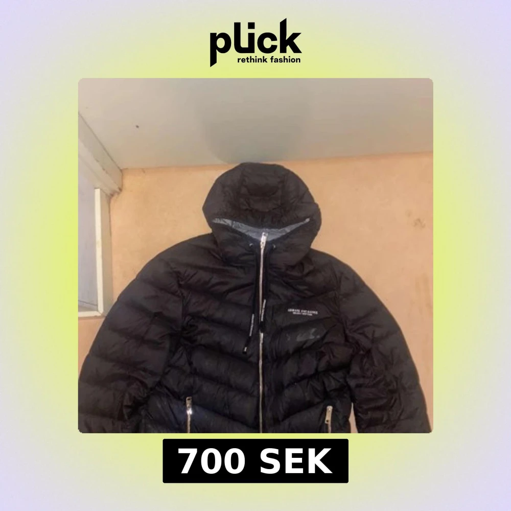 Säljer en snygg svart dunjacka från Armani Exchange. Jackan har ett hål på vänster arm men är lagat syns på bilden, annars helt oskadd