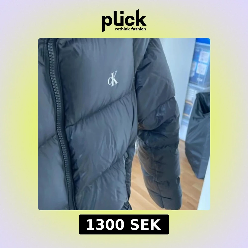 Snygg svart dunjacka från Calvin Klein med dragkedja och huva. Jackan har långa ärmar och två fickor framtill med knappar. Perfekt för kyliga dagar.