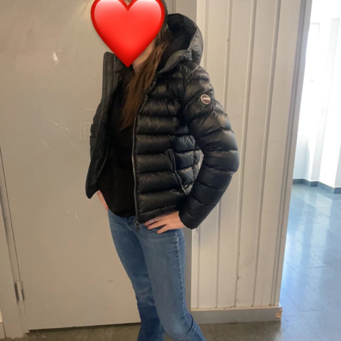 Säljer en snygg svart dunjacka från Colmar Jackan har en dragkedja framtill och är perfekt för kyligare väder. Den är långärmad och har en klassisk pufferdesign som håller dig varm och stilren. Som man ser på bilden så är det ett litet hål där men det inget man märker