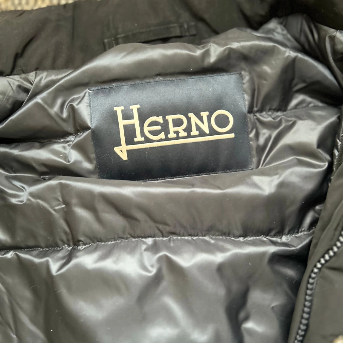 Säljer en svart dunjacka från Herno, perfekt för kalla dagar. Jackan är vattentät och har en stilren design med dragkedja och knappar. Tillverkad i Italien med högkvalitativt dunfoder för extra värme. Ett måste för vintern! Cond: 8/10
