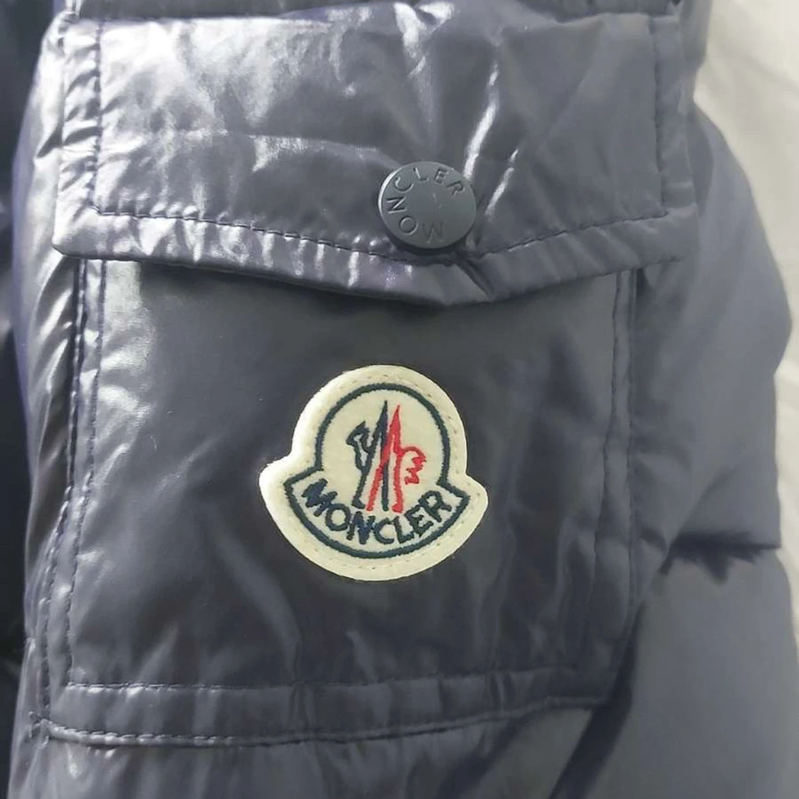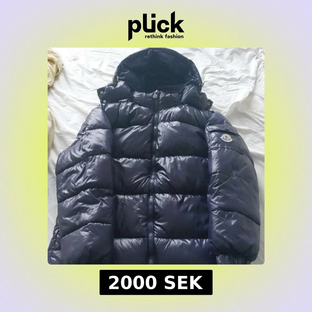 Säljer en svart, glansig dunjacka från Moncler med huva och dragkedja framtill. Jackan har en klassisk pufferstil och Moncler-logga på ärmen. Perfekt för kyliga dagar när du vill hålla dig varm och snygg.