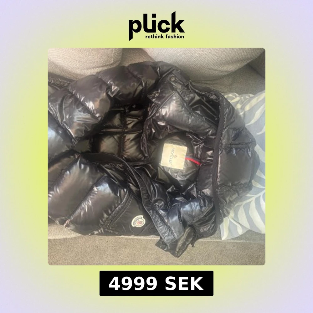 Svart dunjacka från Moncler och markerad midja tack vare bältet. Jackan har dragkedja framtill, fickor med tryckknappar och Moncler logga på ärmen. Jackan är äkta men har inte mina äkthetsbevis kvar men man ser på jackan att den är äkta.