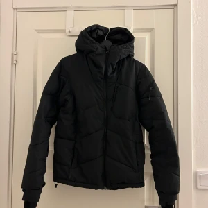 Säljer en svart dunjacka från Peak Performance. Jackan har en huva och dragkedja framtill. Perfekt för kyliga dagar med sin långa ärmar och stilrena design.