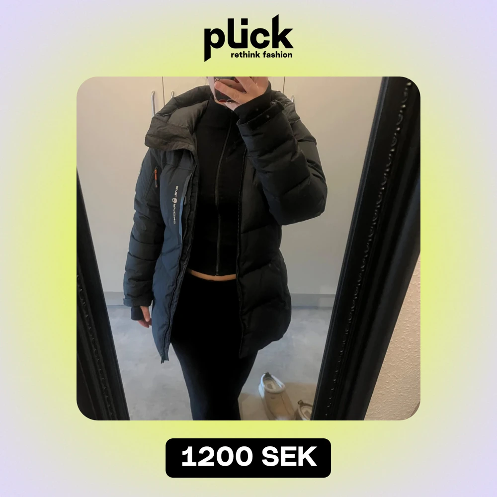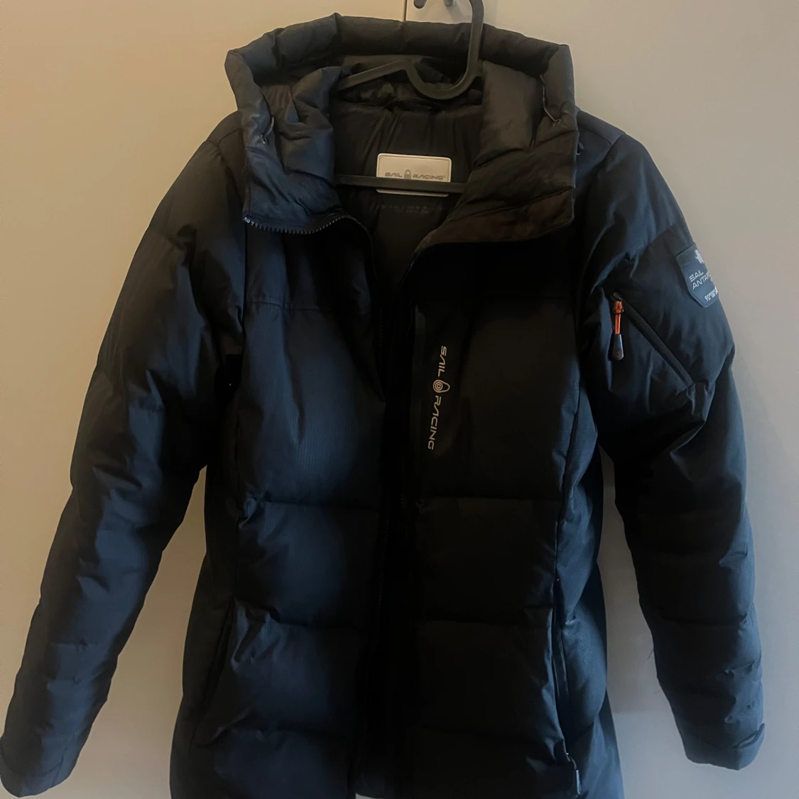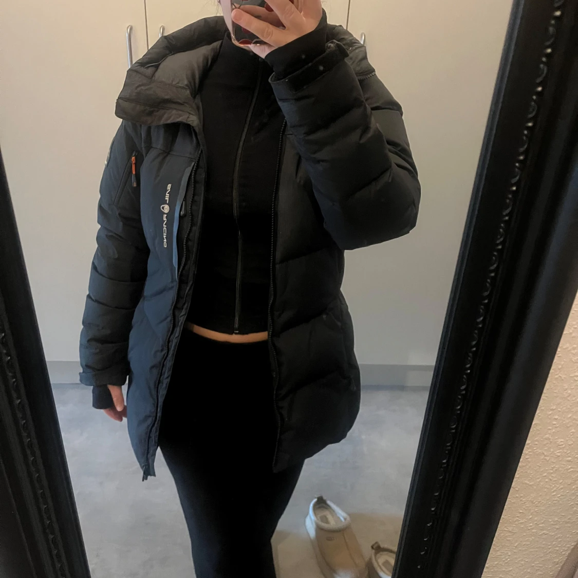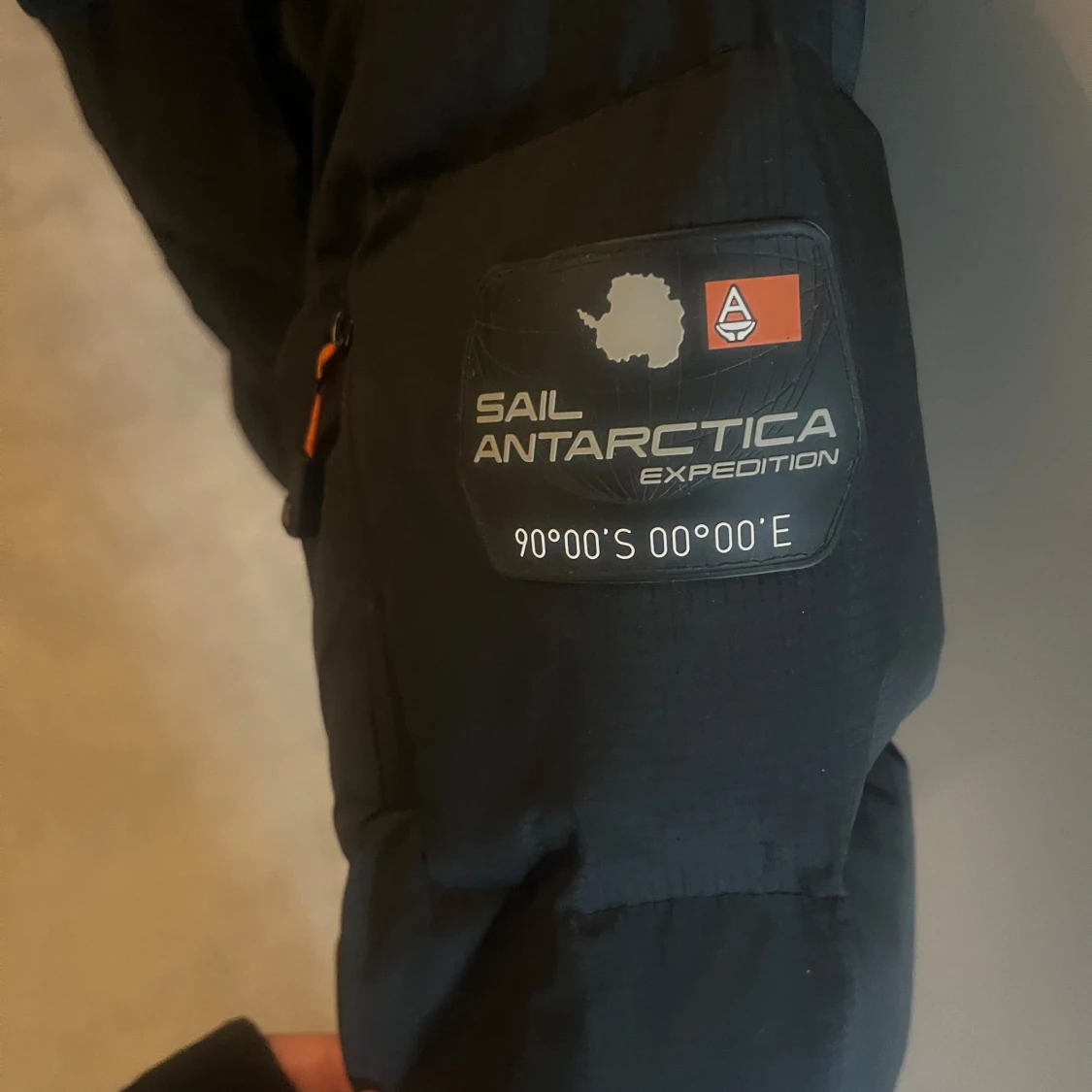 Säljer en svart dunjacka från Sail Racing i mycket bra skick. Jackan är perfekt för kalla vinterdagar och har en snygg och funktionell design med dragkedja och hög krage. Den har en cool patch på ärmen med 'Sail Antarctica Expedition'. Kvitto finns, köpt för 3499kr