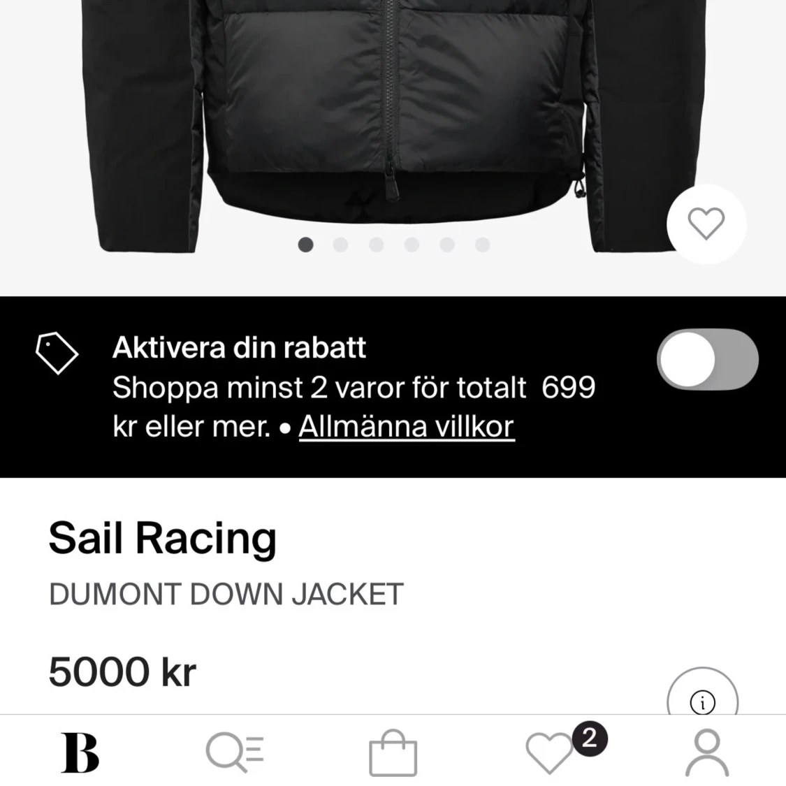 Svart dunjacka från Sail Racing