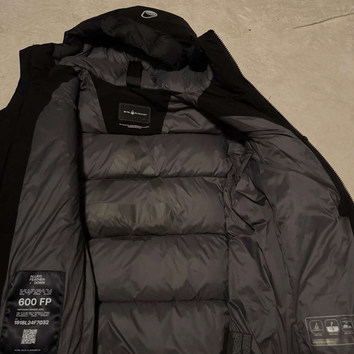 Säljer en svart dunjacka från Sail Racing med 600 FP dunfyllning. Jackan har huva, dragkedja framtill och flera praktiska fickor med dragkedja. Perfekt för kalla dagar och riktigt snygg streetstil. Logga på bröstet och insidan.