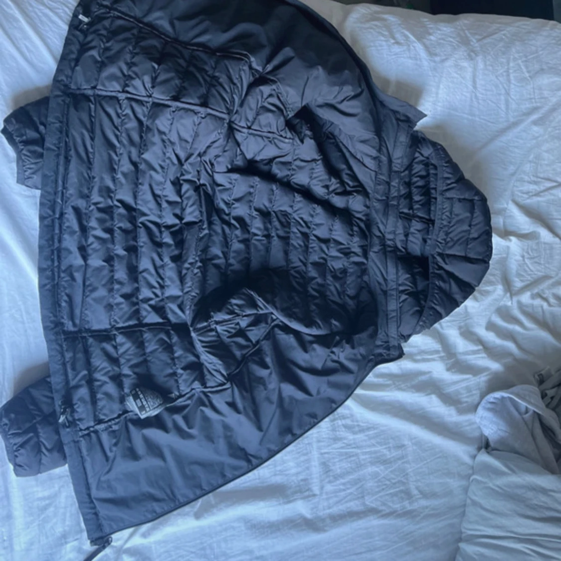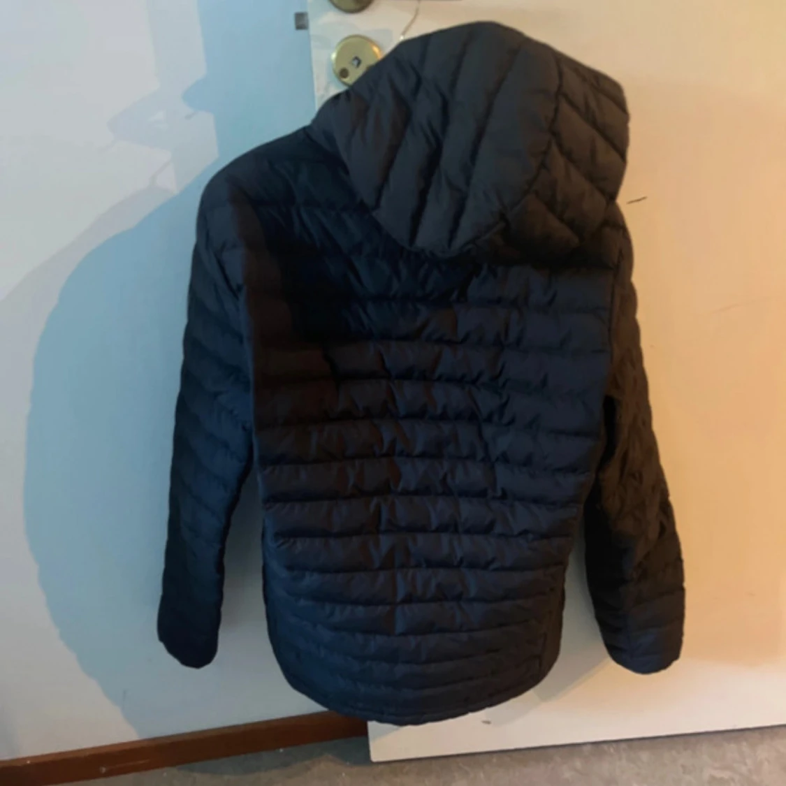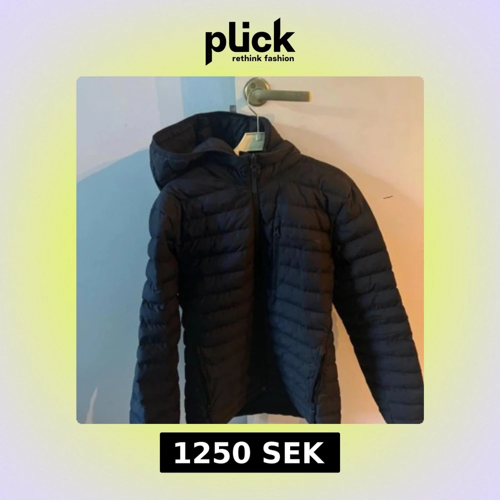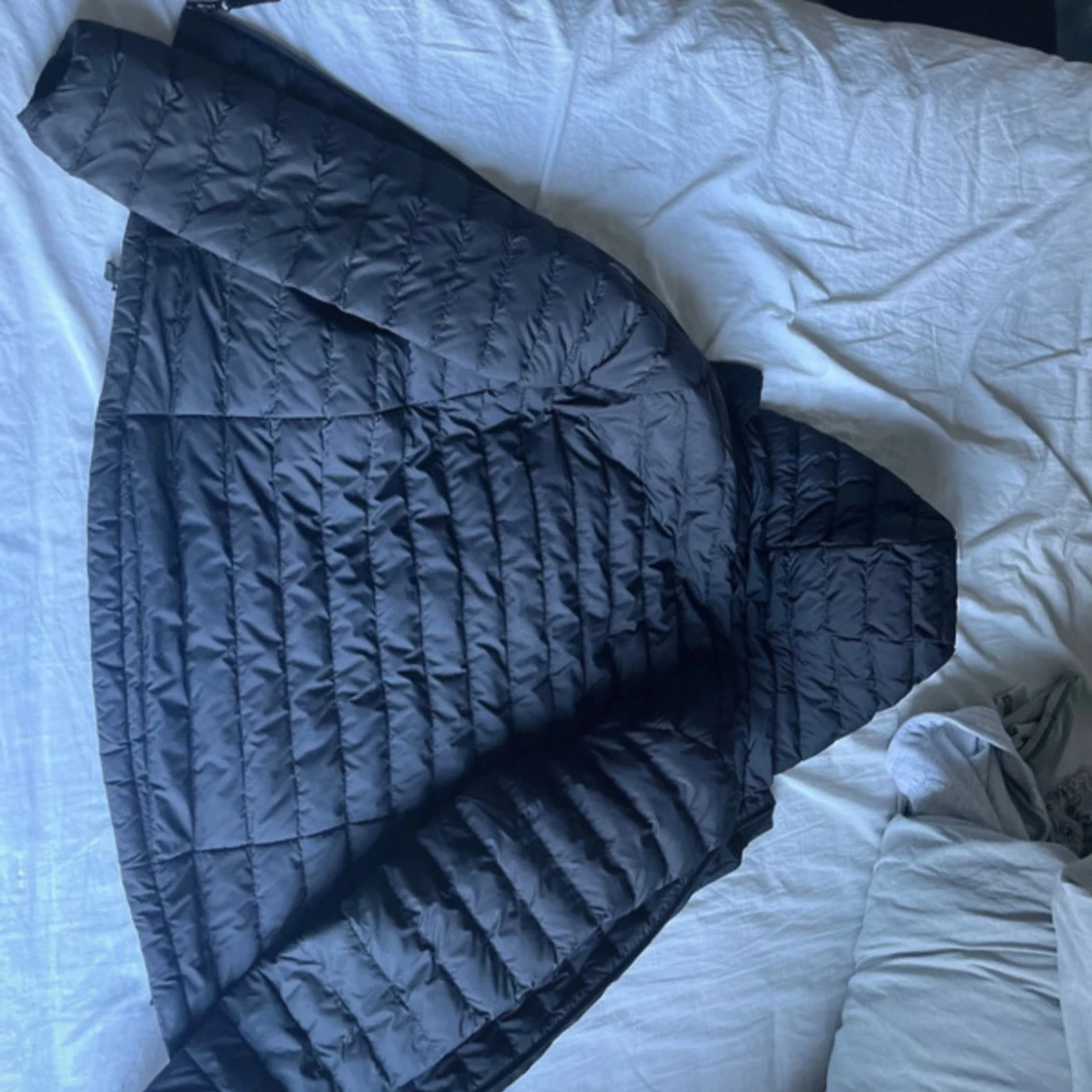 Svart dunjacka från Peak Performance med huva och snygg quiltad design. Passformen är normal och jackan är långärmad.