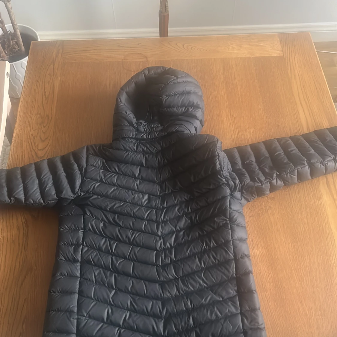 Säljer en svart dunjacka från Peak Performance med snygg quiltad design och huva. Jackan har dragkedja framtill och två sidofickor. Perfekt för kalla dagar och har en modern, sportig look som funkar till de flesta stilar.