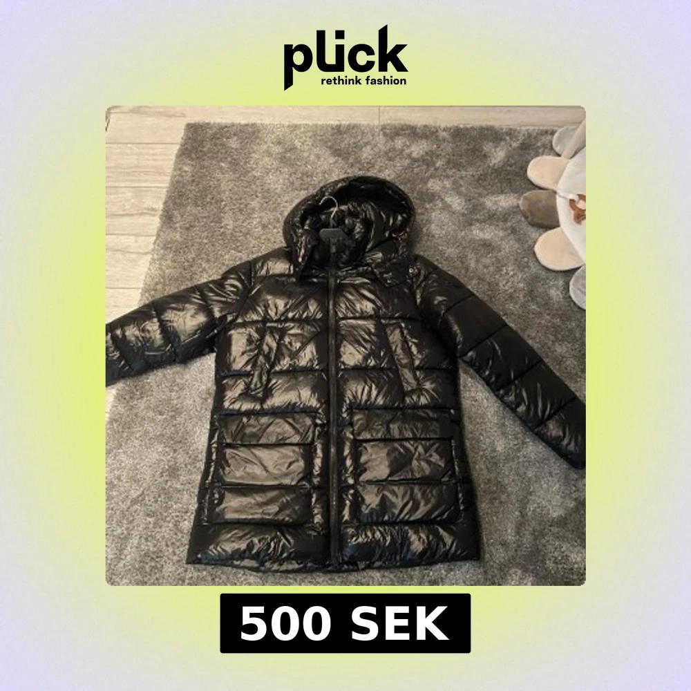 Säljer en svart pufferjacka från Save The Duck med huva och stora fickor framtill. Jackan har dragkedja och är tillverkad i syntetmaterial, helt fri från animaliska produkter. Perfekt för kyliga dagar. Nytt skick!! Pris kan diskuteras!