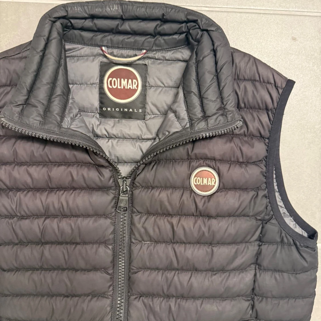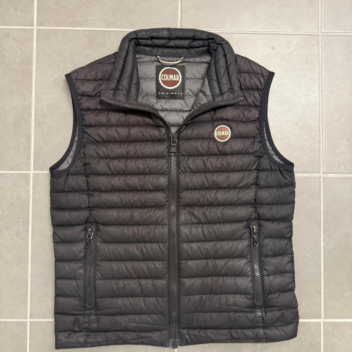 Svart dunväst från Colmar med quiltad design och hög krage. Västen har två fickor med dragkedja framtill och Colmar-logga på bröstet. Perfekt för lager-på-lager och snygg till både hoodie och t-shirt.