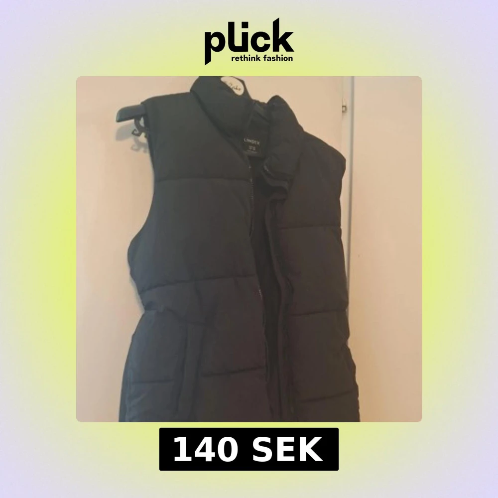 Svart dunväst från Lindex i storlek XS. Västen har en hög krage och quiltad design med dragkedja framtill. Perfekt att slänga över en hoodie för extra värme. Enkel och stilren look som funkar till många outfits. Den har även ett band om går och knyta med runt midjan.