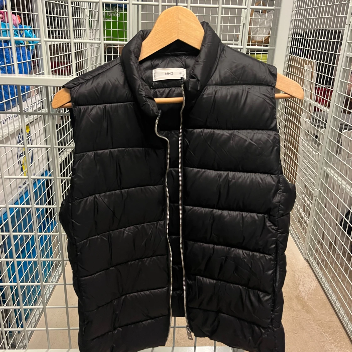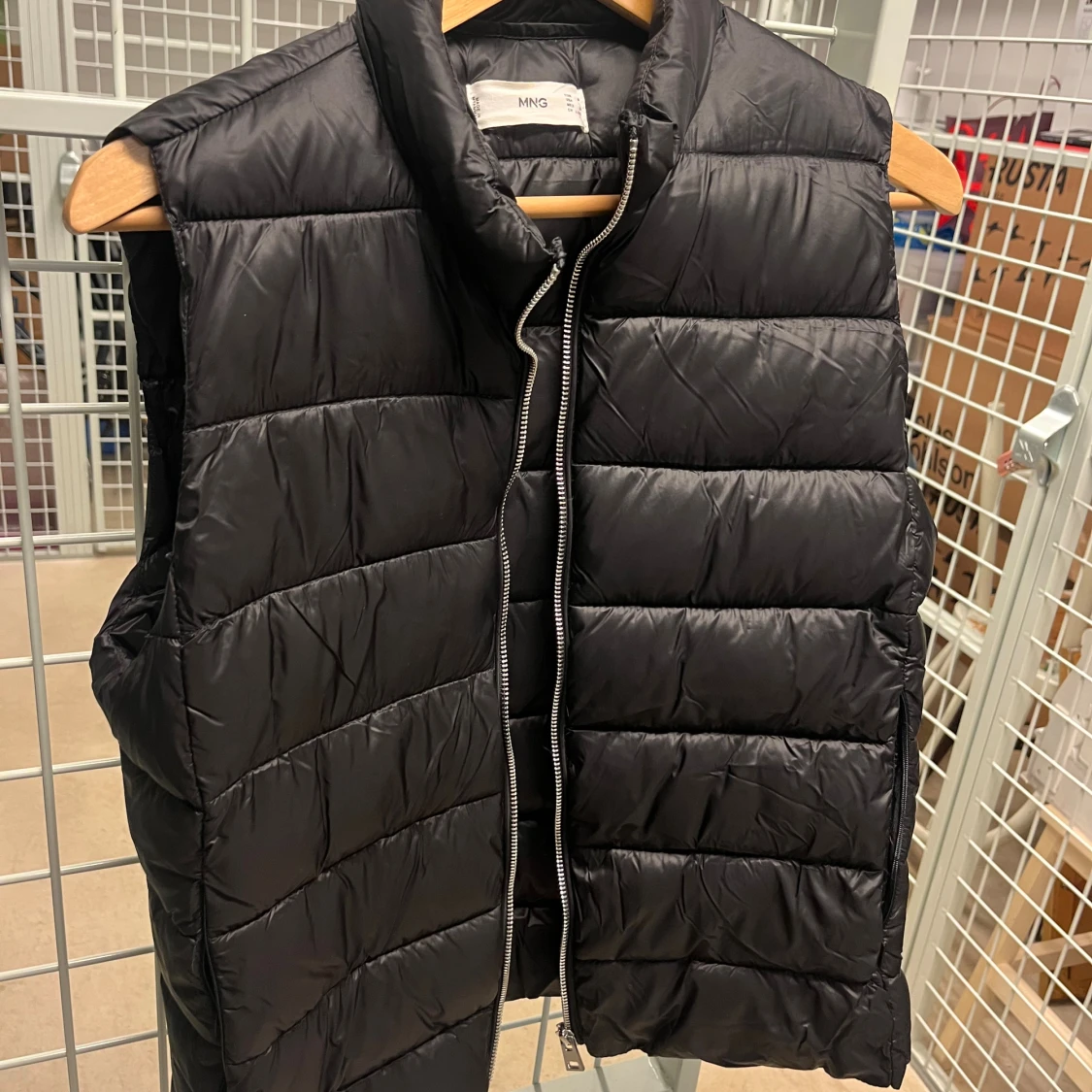 Svart dunväst från MANGO med krage och silverfärgad dragkedja framtill. Västen har en stilren, puffad look och är tillverkad i syntetmaterial. Perfekt att slänga över en hoodie för extra värme under höst och vinter.