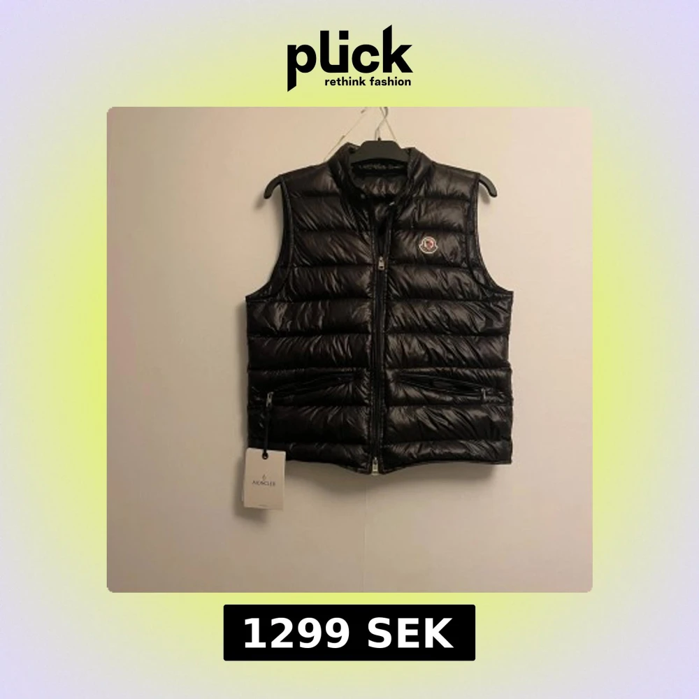 Svart dunväst från Moncler med quiltad design och glansig finish. Västen har två sidofickor med dragkedja, dubbel dragkedja framtill och Moncler-logga på bröstet. Perfekt för lager-på-lager och snygg till streetwear. Skick 10/10 använd endast en gång