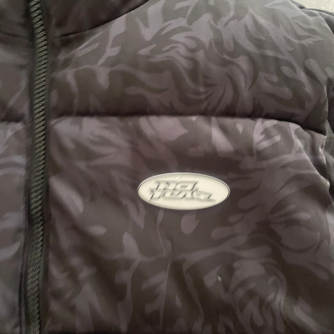 Säljer en svart dunväst från No Fear i storlek M. Västen har ett diskret mörkt mönster, hög krage och dragkedja framtill. Två fickor med knappstängning och en oval No Fear-logga på bröstet. Perfekt för lager-på-lager och streetwear.