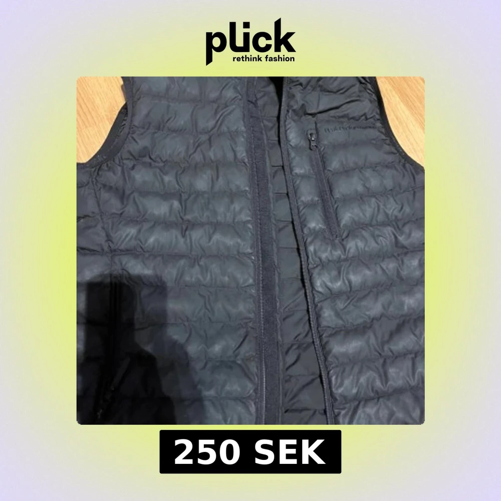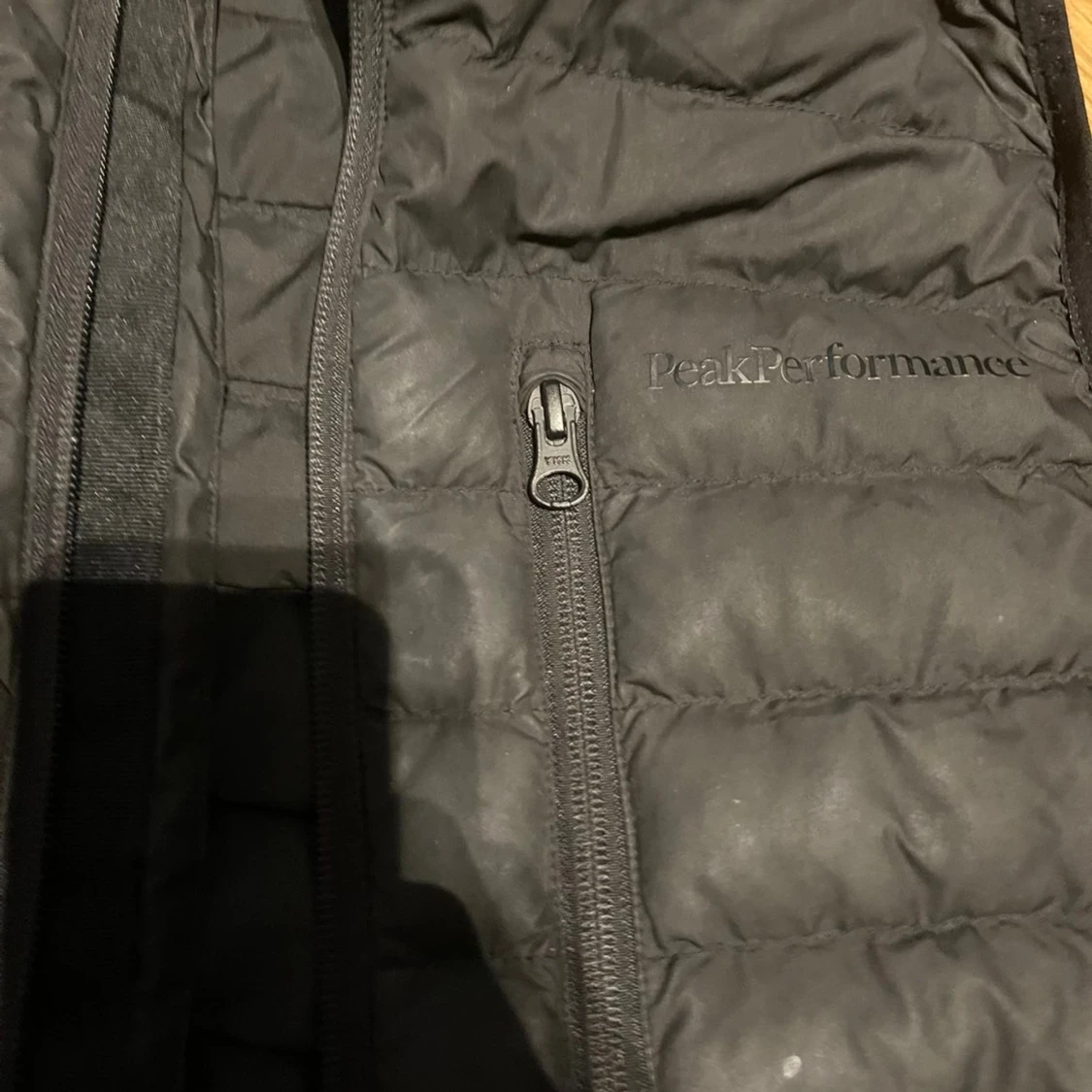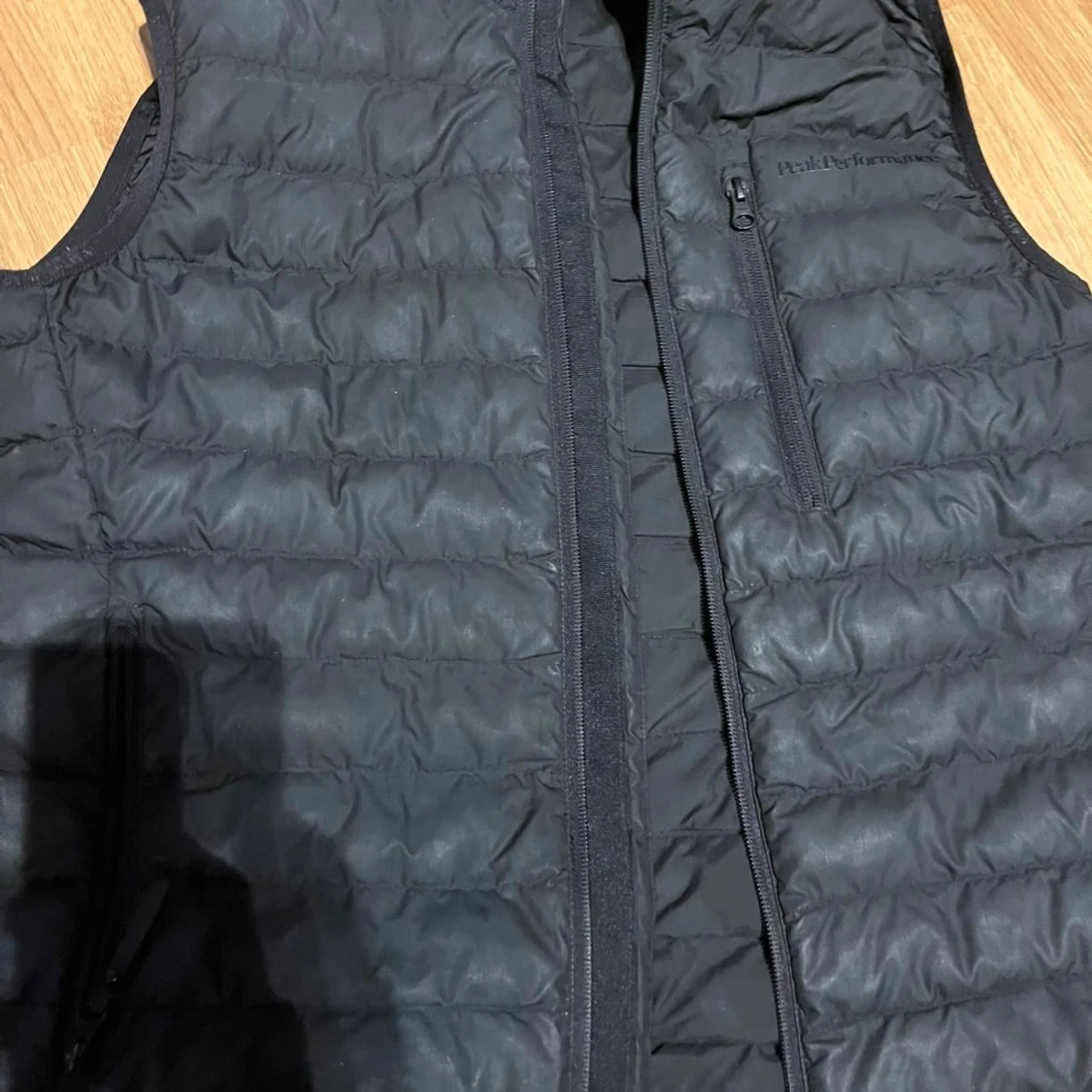 Svart quiltad dunväst från Peak Performance med diskret logga på bröstet och dragkedja framtill. Västen har en bröstficka med dragkedja och är tillverkad i lätt polyester. Perfekt för lager-på-lager under kyliga dagar. liten defekt se bild ovan
