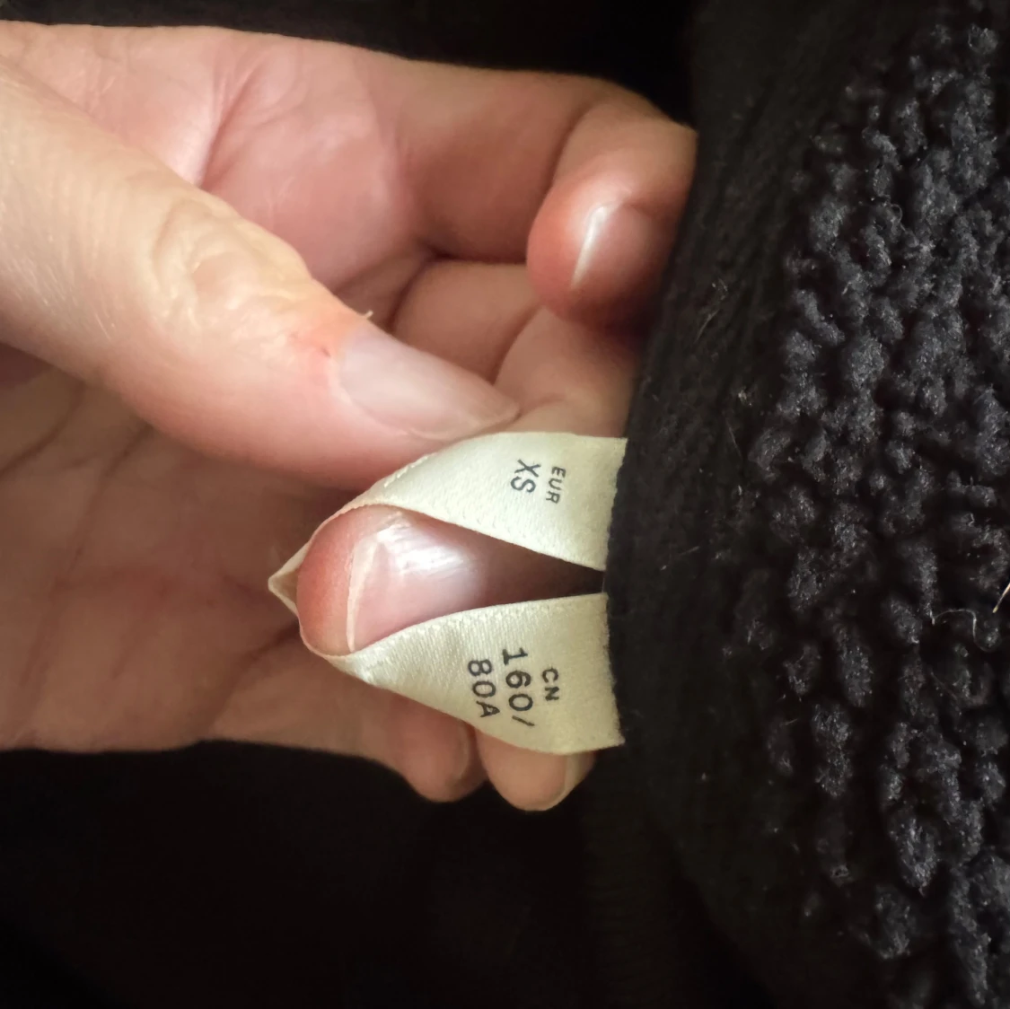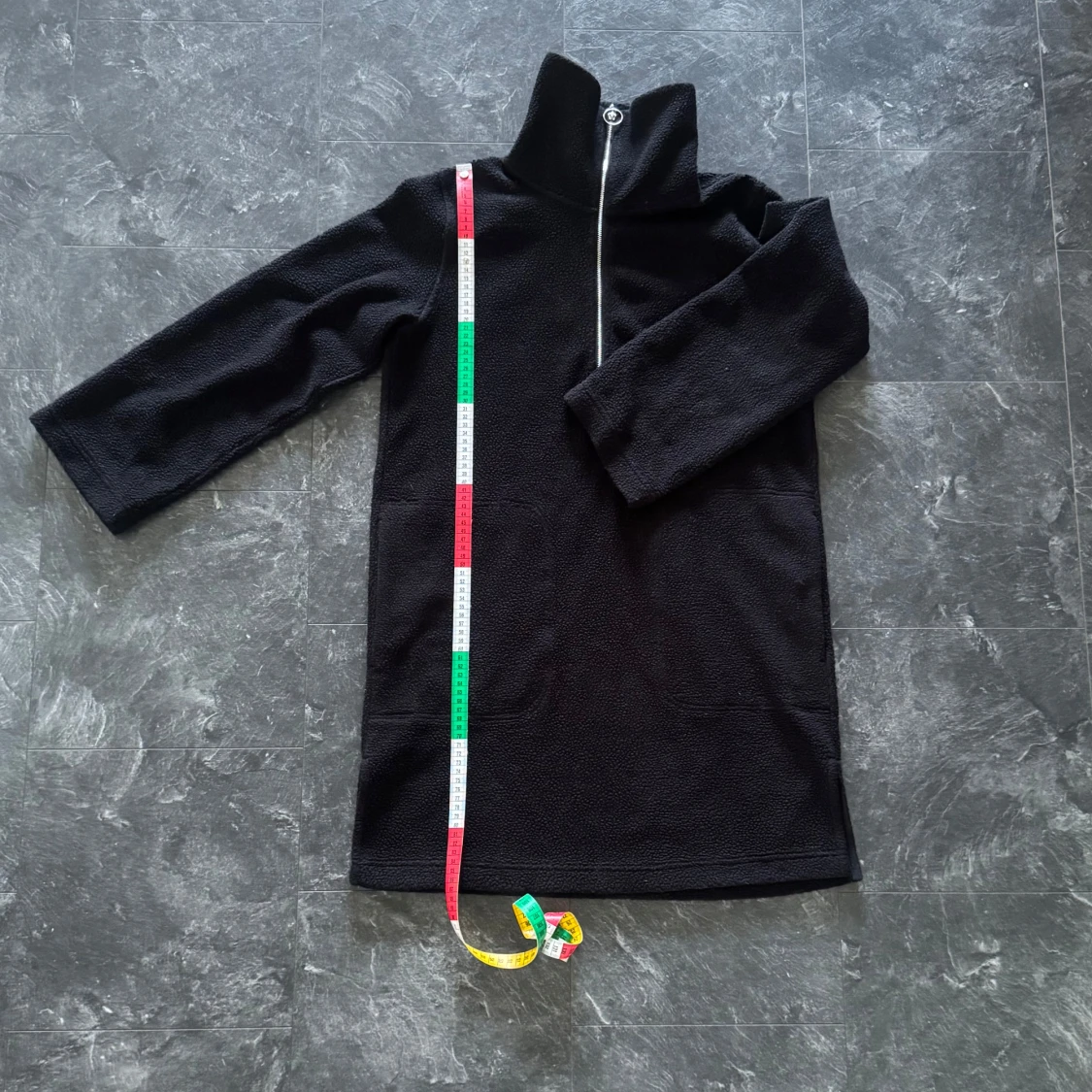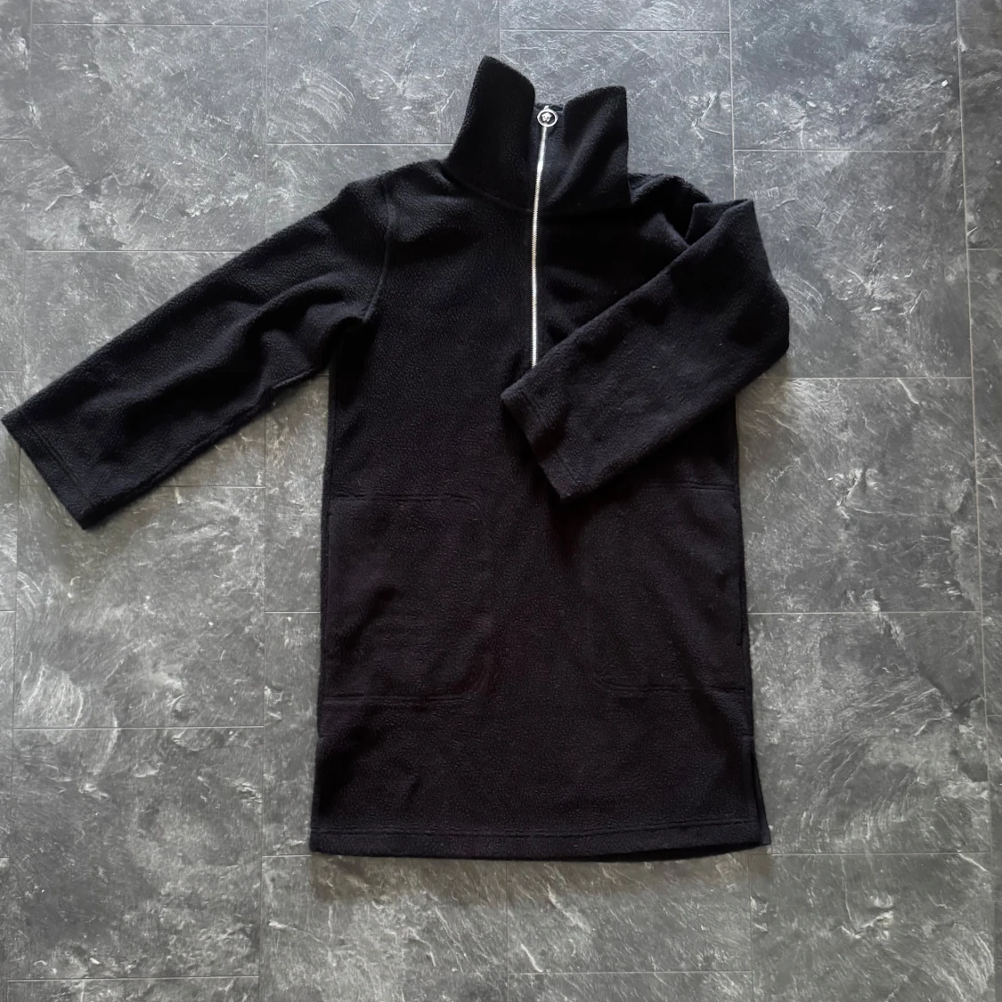 Svart fleecetröja med hög krage och fickor från Arket i storlek XS, använd fåtal gånger, varm och mysig. nypris 799:-