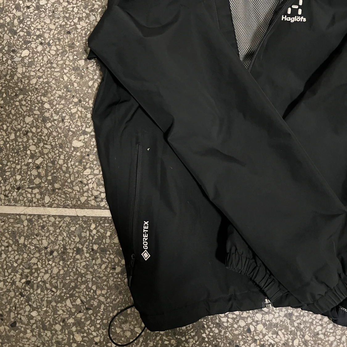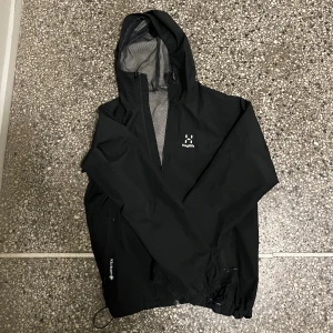 Snygg svart regn/vind jacka från Haglöfs med huva och dragkedja. Jackan är som en ny!! Köpt för 1999kr! Säljer nu för 1249!! Skriv hjärna vid intresse