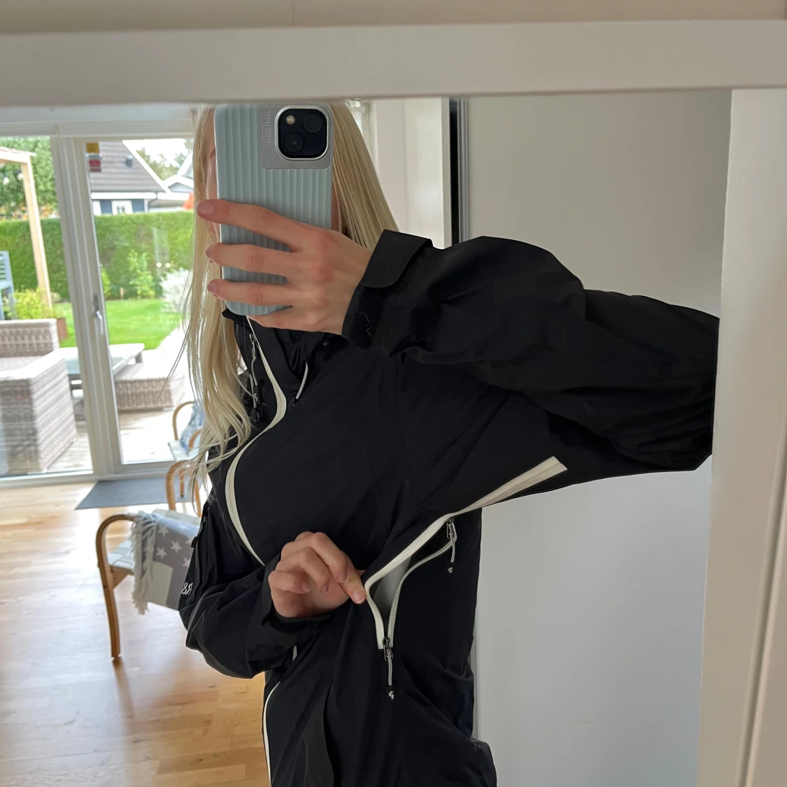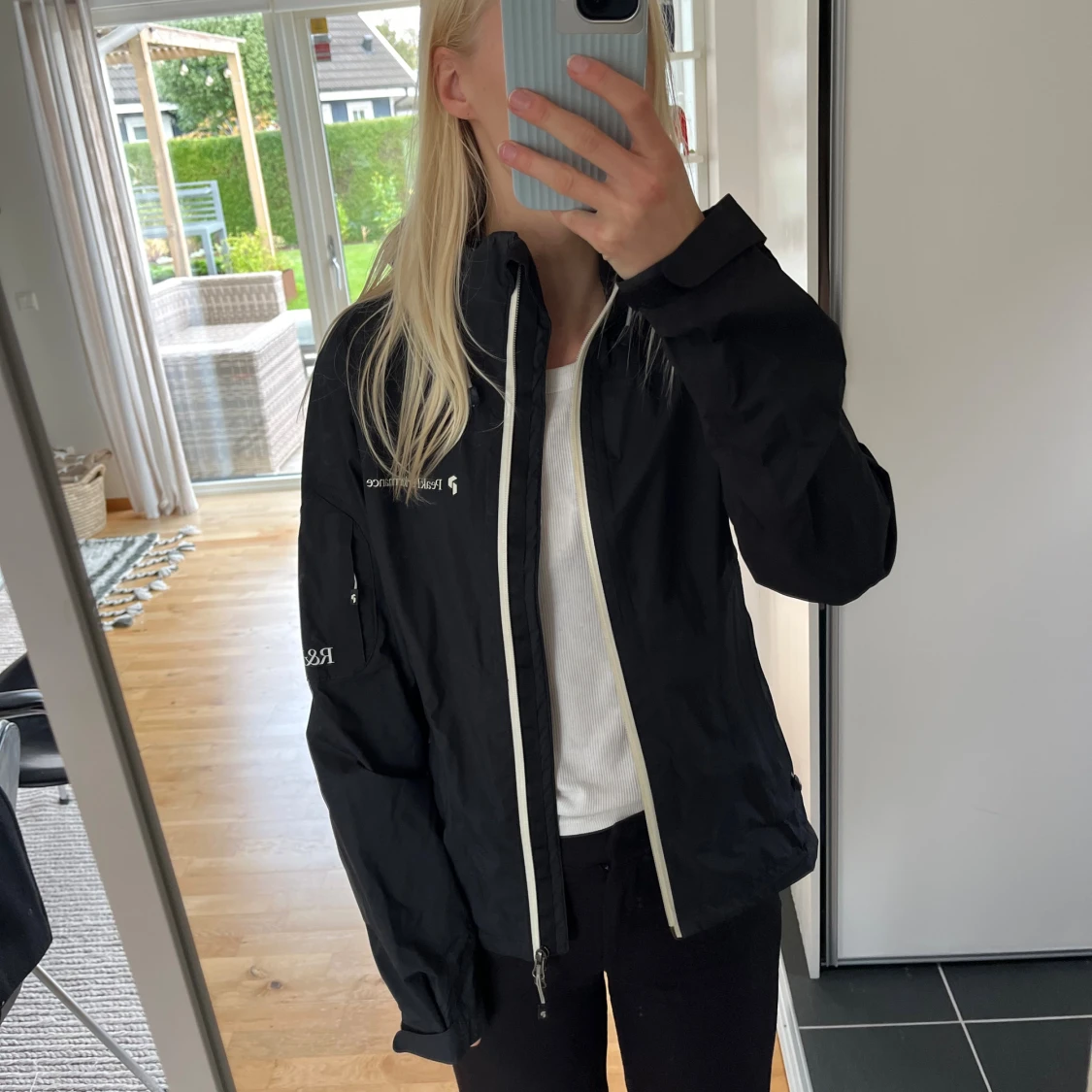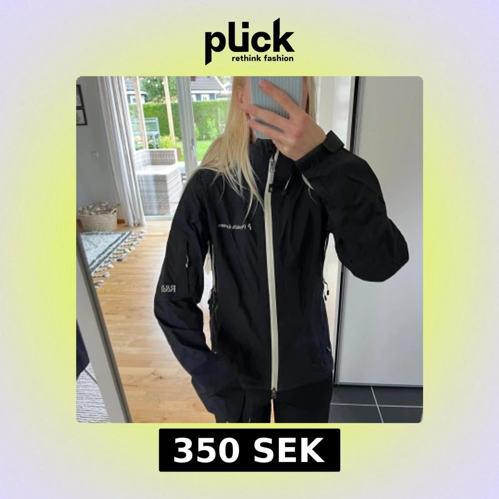 Svart vindjacka från Peak Performance med vit dragkedja och ventilerande zip under armarna. Jackan är tillverkad i Gore-Tex Paclite Shell, har hög krage och praktiska fickor med dragkedja.