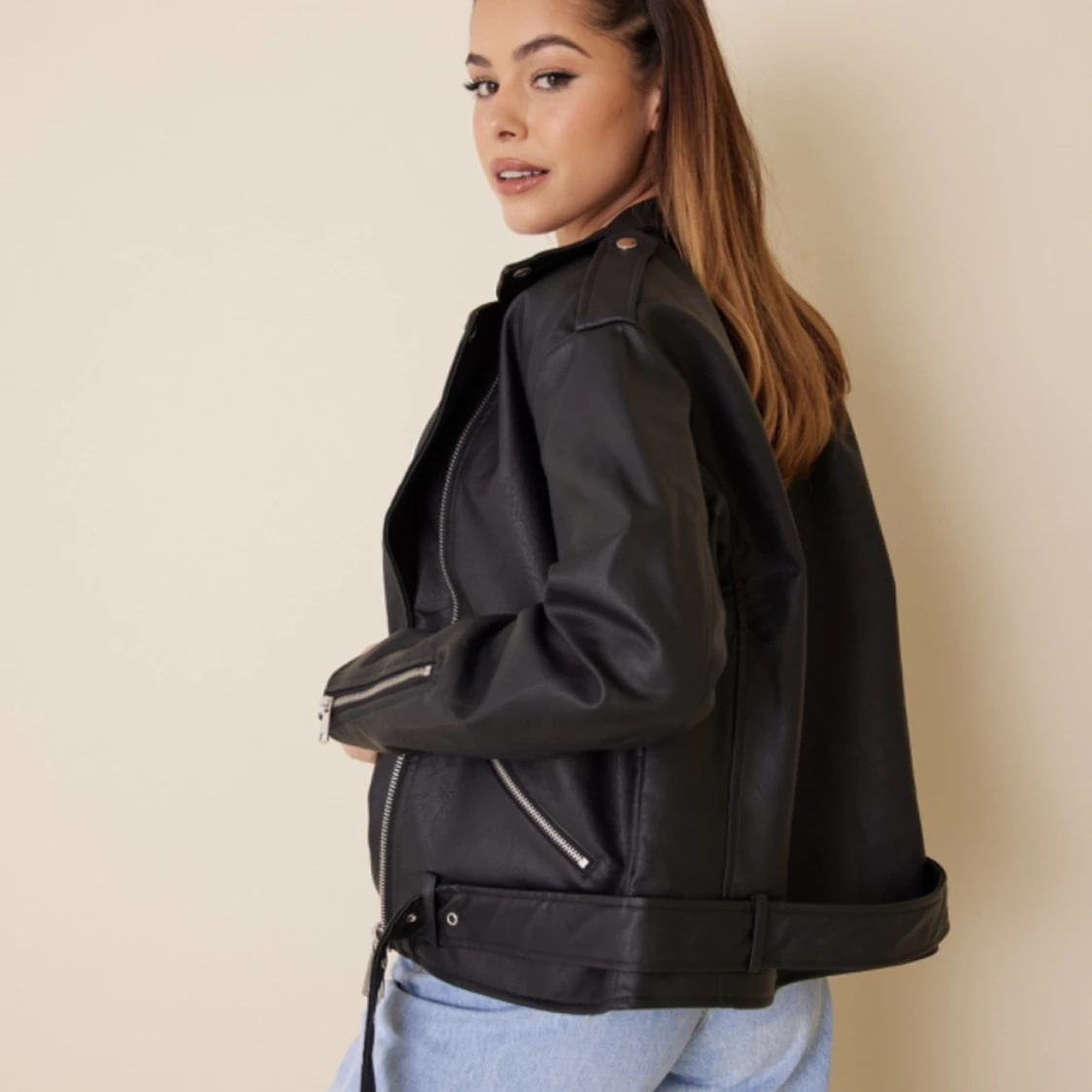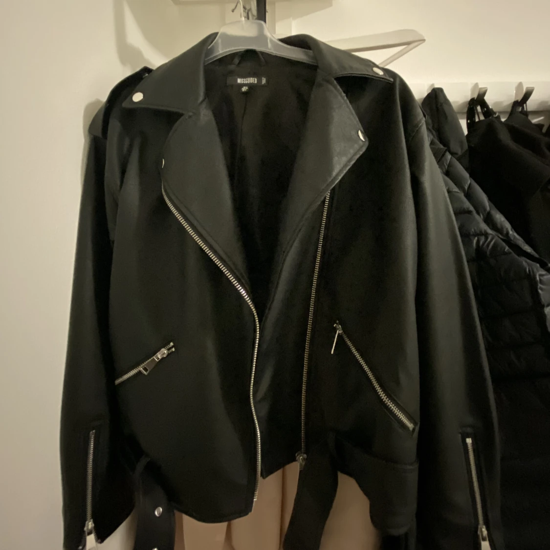 Säljer min fina skinnjacka från missguided för den kommer inte till användning🫣 Använd kanske 2 gånger, inga skador eller liknande. Modellen är overzise och bältet kan man ta av. Nypris 500kr! Skriv privat för fler bilder!!🌝