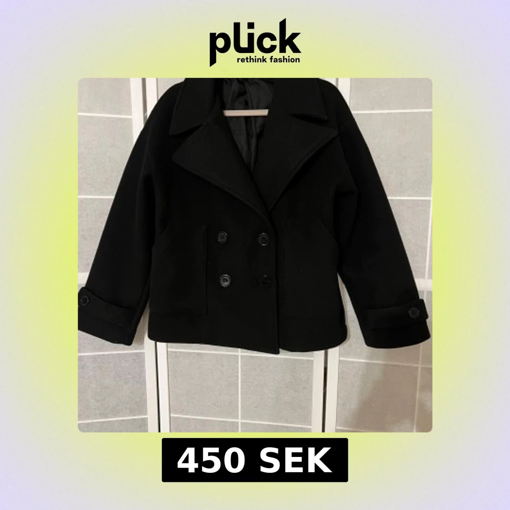 Svart design by si kappa - Säljer en svart kappa från design by si med bred krage och dubbelknäppning framtill. Jackan har en loose passform, stora knappar och snygga detaljer vid ärmsluten. Perfekt för dig som gillar en stilren och chill look.