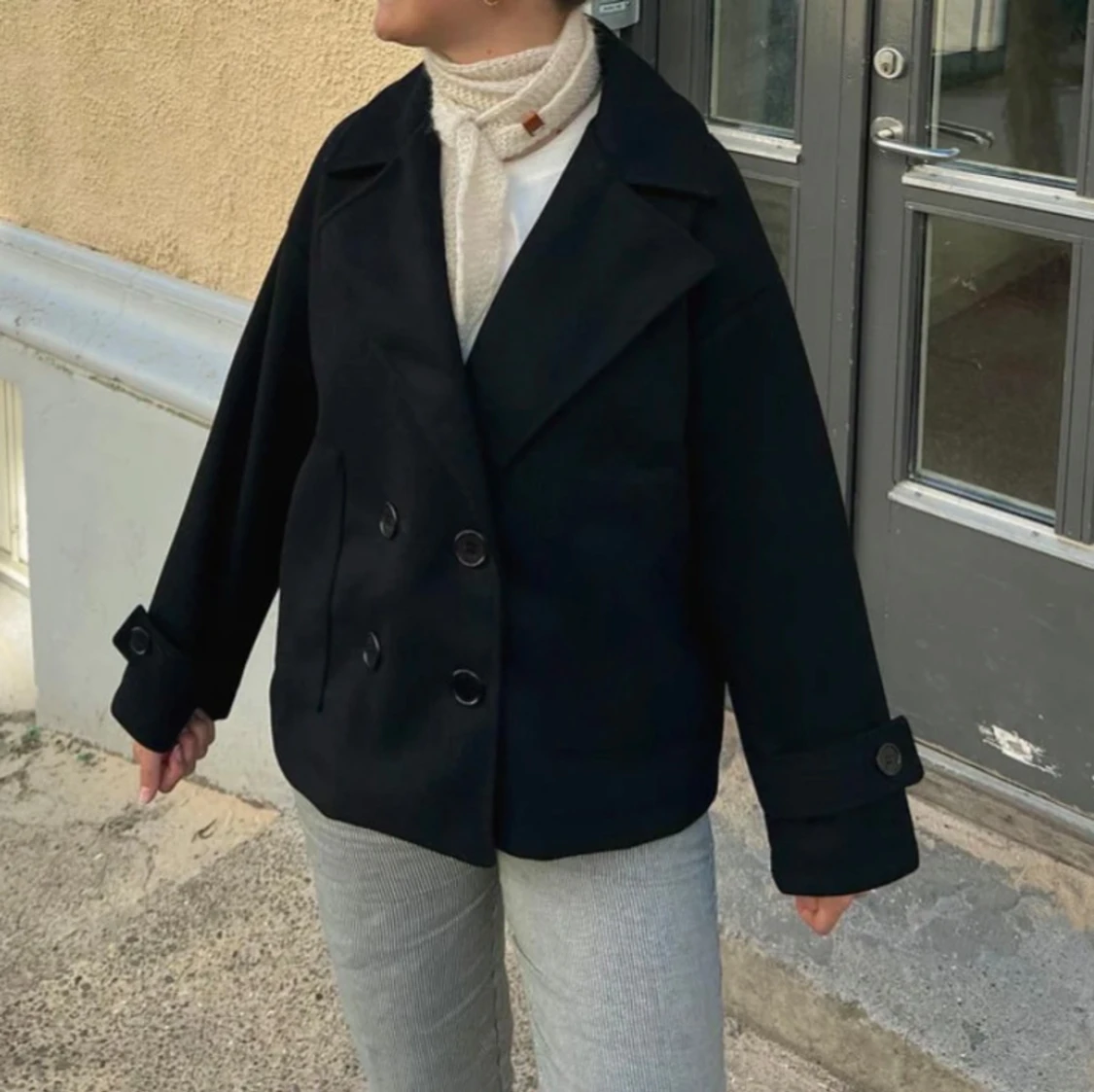 Stilren svart kavaj/kappa med dubbelknäppning, från Design by Si❤️ Nypris: 757kr