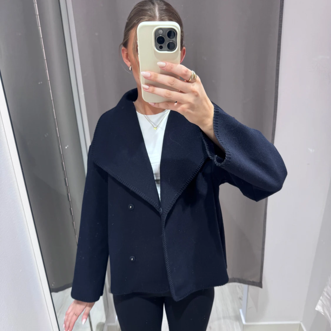 Säljer min korta kappa från Gina. Köpt på barnavdelningen storlek 170 men passar mig som vanligtvis jag S/34-36