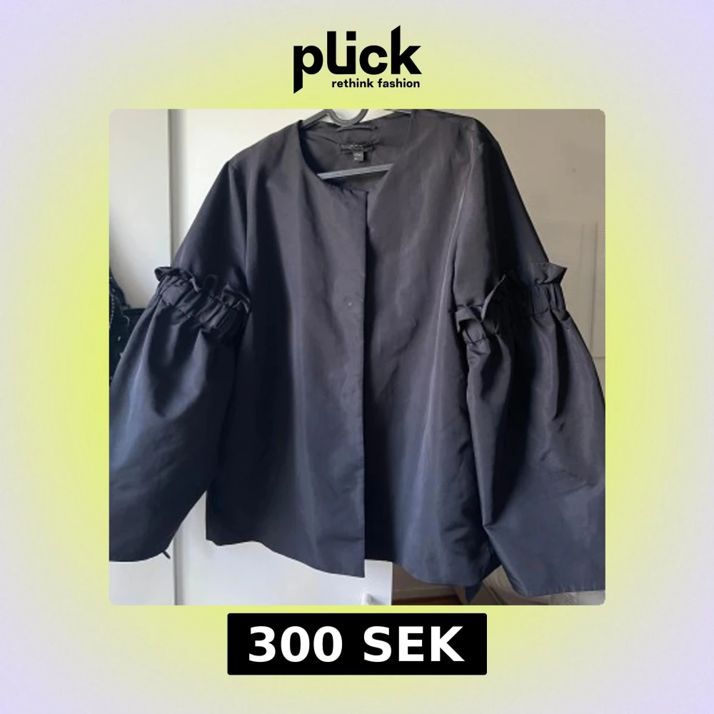 Stilren svart kavajjacka från COS med voluminösa, rynkade ärmar och dold knäppning framtill. Jackan har en rak, loose passform. Passar snyggt till höst/vår🫶🏼 tunn material