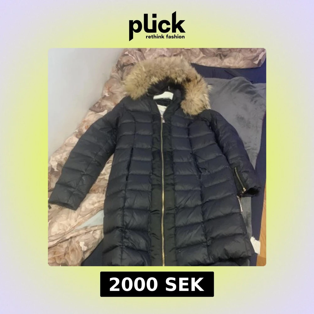 Snygg svart lång dunjacka från Chiara Forthi med fluffig fuskpäls på huvan och guldfärgad dragkedja. Jackan har quiltad design, långa ärmar och en stilren look som håller dig varm under kalla dagar. Äkta päls