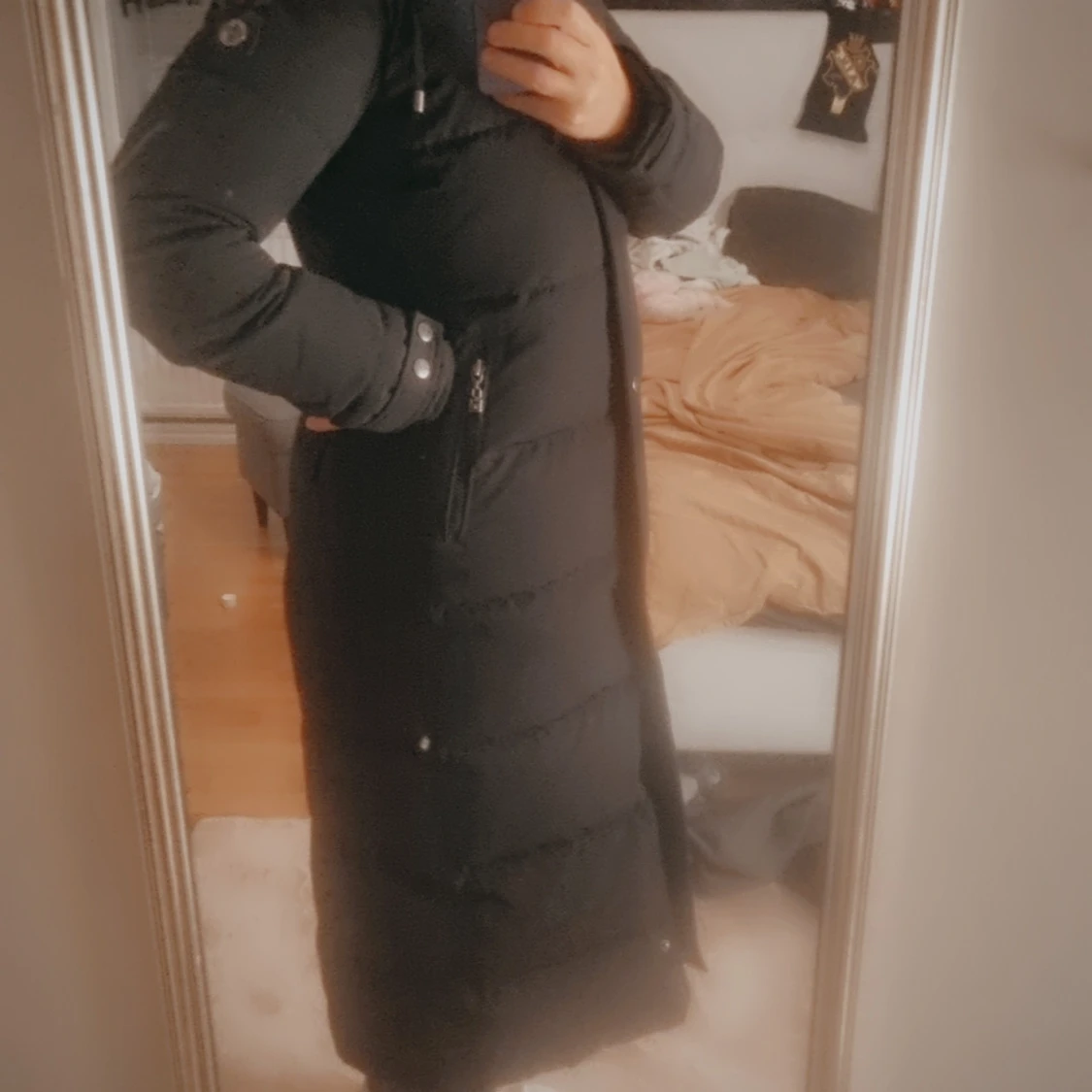 Säljer en svart lång dunjacka med stor fluffig päls på luvan. Jackan har dragkedja och knappar framtill, samt fickor på sidorna. Perfekt för kalla dagar med sin varma och stilrena look. Luvan är riktigt maffig och ger jackan en cool vibe. Märket är hollies och har köpts förra vintern i Barkaby hollies Stockholm. Nypriset var 4999 kr säljes nu för 1500 kr. Priset går att diskutera såklart 🥰