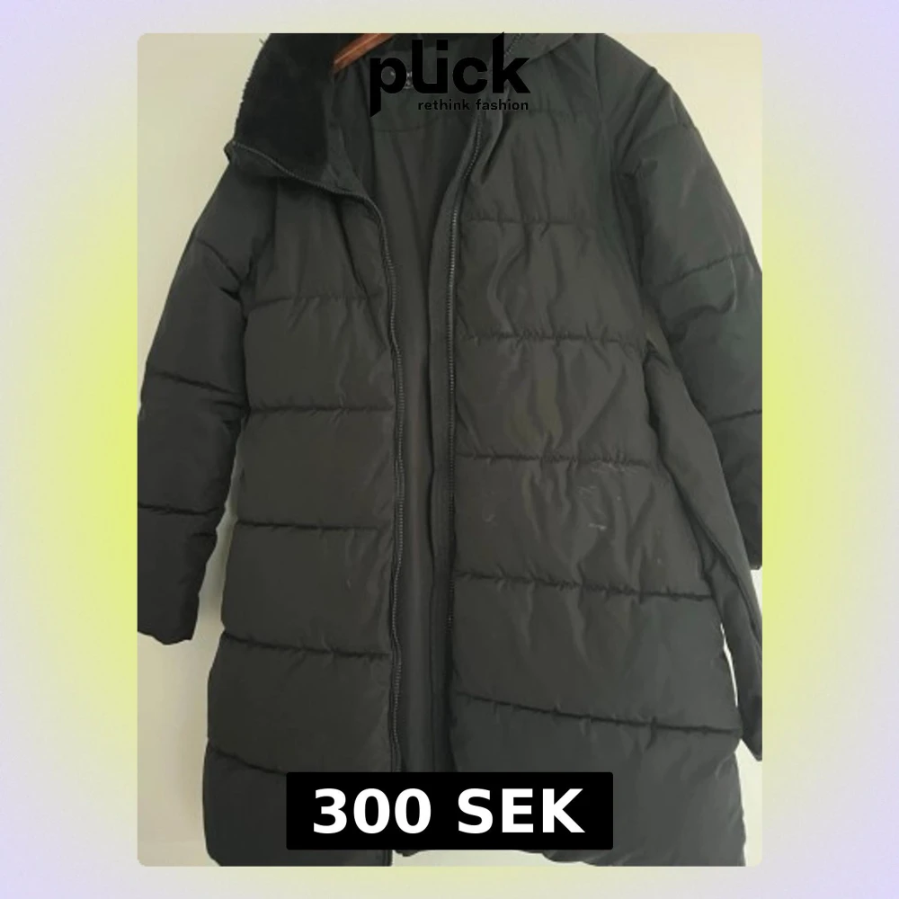 Svart pufferjacka från Lindex i storlek S. Jackan är lång, har huva och dragkedja framtill. Perfekt för kalla dagar när du vill vara både varm och snygg.Den har knappt använts, bara några få gånger, och ser ut som ny.