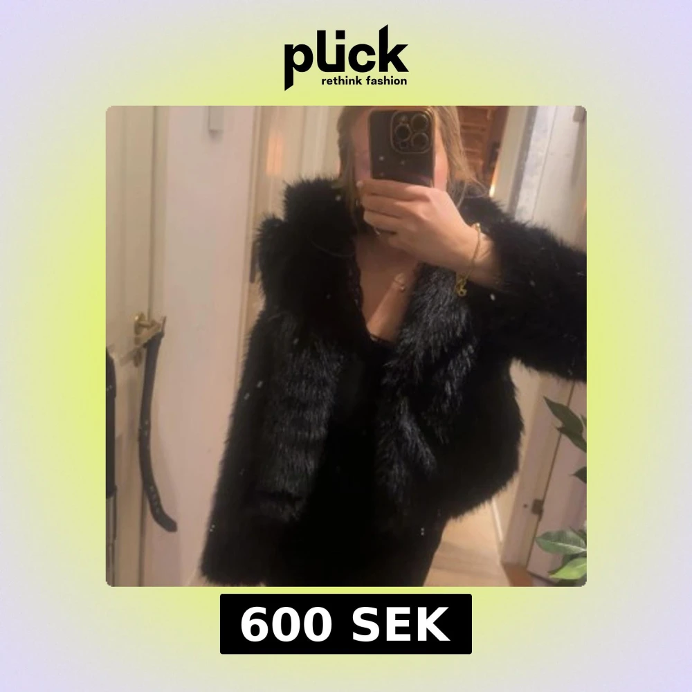 Säljer en elegant svart pälsjacka med fluffig textur. Jackan har en klassisk design och är perfekt för att hålla dig varm och stilren under kyliga dagar. Den är lätt att matcha med olika outfits och ger en lyxig känsla.
