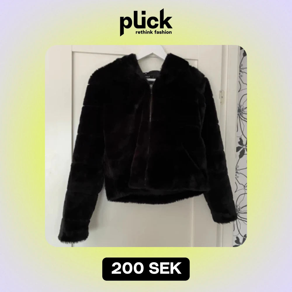 En elegant och varm svart pälsjacka från ONLY. Jackan har en dragkedja framtill och en huva för extra värme. Den är långärmad och har en mjuk, lyxig känsla. sparsamt använd.