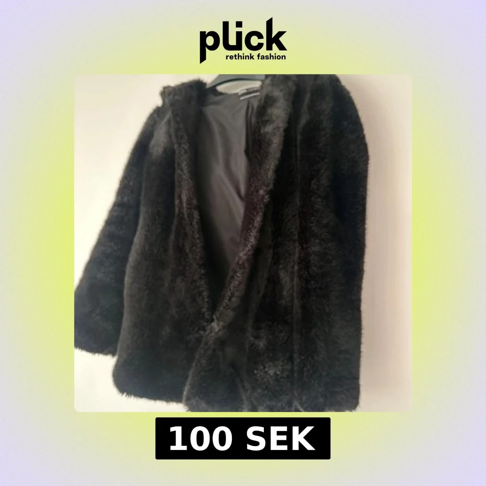 Mysig svart pälsjacka från zara med klassisk krage och helsvart foder. Jackan har lång ärm och en rak, något boxig passform. Perfekt för att lyfta din outfit under kallare dagar.
