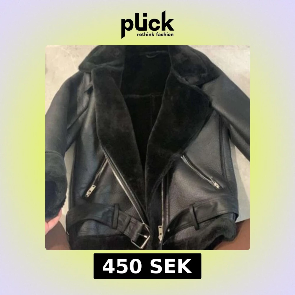 Säljer en svart pälsjacka med bred krage och mjukt foder. Jackan har två sneda dragkedjor framtill, bälte i midjan och detaljer vid ärmslut. Perfekt för dig som vill ha en cool och varm look under kalla dagar.bälte saknas